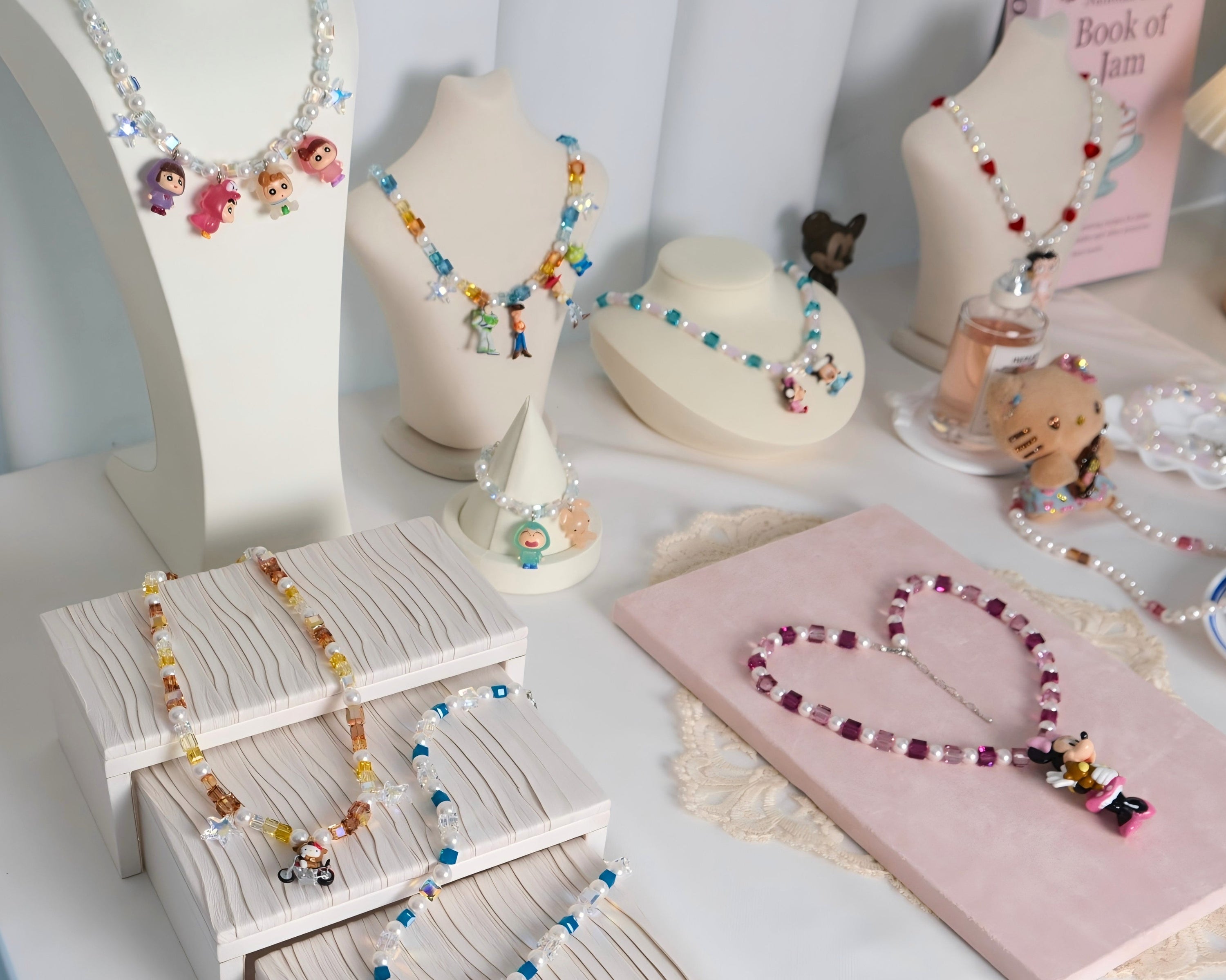 At Shinora Studio, every piece is made in small batches with a focus on detail and feel. Our jewelry is hand-strung and hand-finished in our own workspace using authentic Swarovski crystals and carefully sourced pearls.